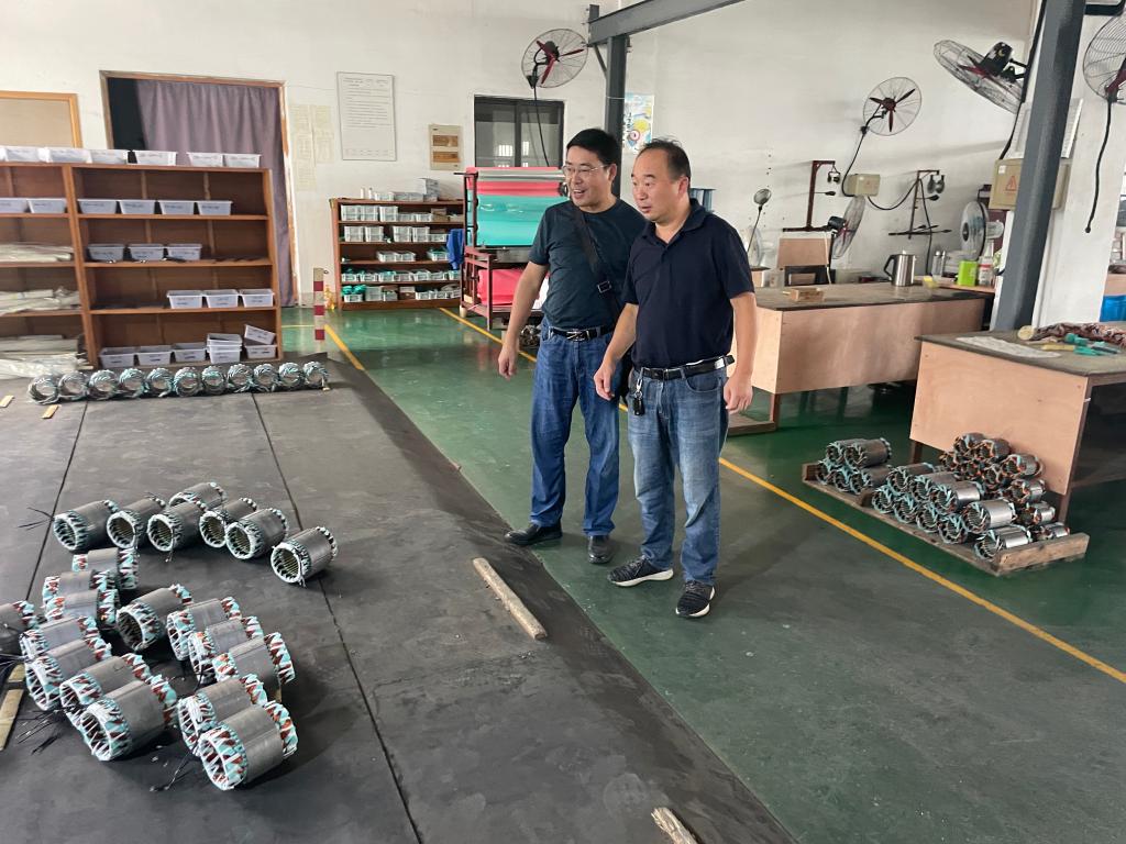 总工程师吴志凌就电机车间各项生产流程、工艺和正在新建的电机实验检测系统进行详细介绍,并陪同教师参观了企业三相交流异步电动机生产车间。随后双方就企业研发新产品和相关技术改革遇到的瓶颈展开了深入的交流,并在电机新产品开发及设计、产品检验检测、人才培养及实习基地等方面达成合作意向。