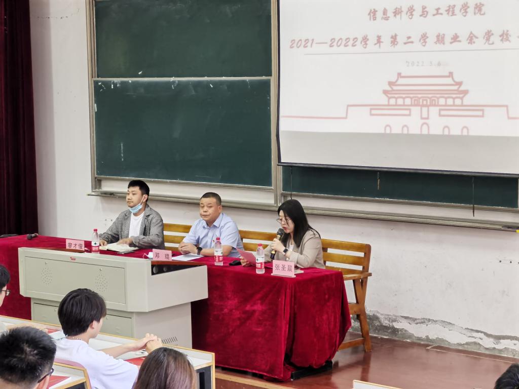 2021-2022学年第二学期业余党校开班典礼在13号楼报告厅隆重举行。院党委副书记邓琨、党校班主任和全体党校学员参加典礼,班主任张圣晨主持典礼。