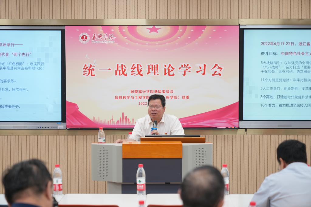 922日下午,学院党委与民盟嘉兴学院基层委员会在兴礼楼209智慧教室联合举办统一战线理论学习会,嘉兴学院党委副书记吴云达受邀做《凝聚共识 彰显作为》主题报告。会议由学院党委书记谢宏主持。