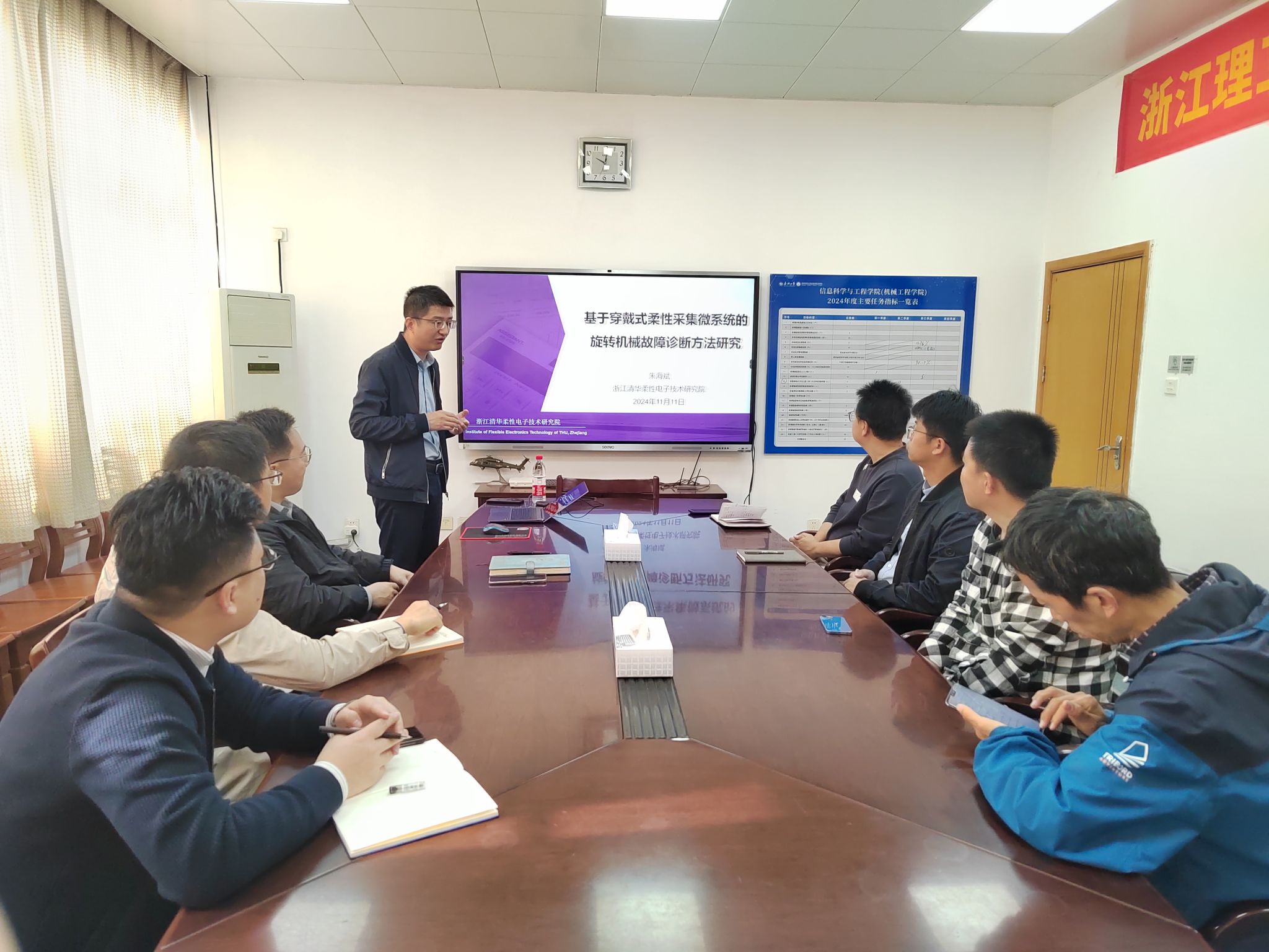 1111日上午,浙江清华柔性电子技术研究院朱海斌研究员应邀为我院作“基于穿戴式柔性采集微系统的旋转机械故障诊断方法研究”专题学术报告。机械工程系教师以及部分硕士研究生参加了此次学术报告会报告会由鹿业波副院长主持。