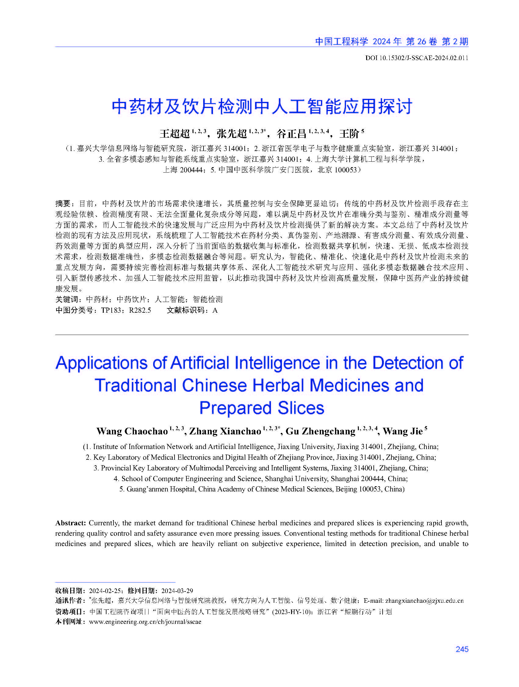 【论文】王超超、张先超等,中药材及饮片检测中人工智能应用探讨